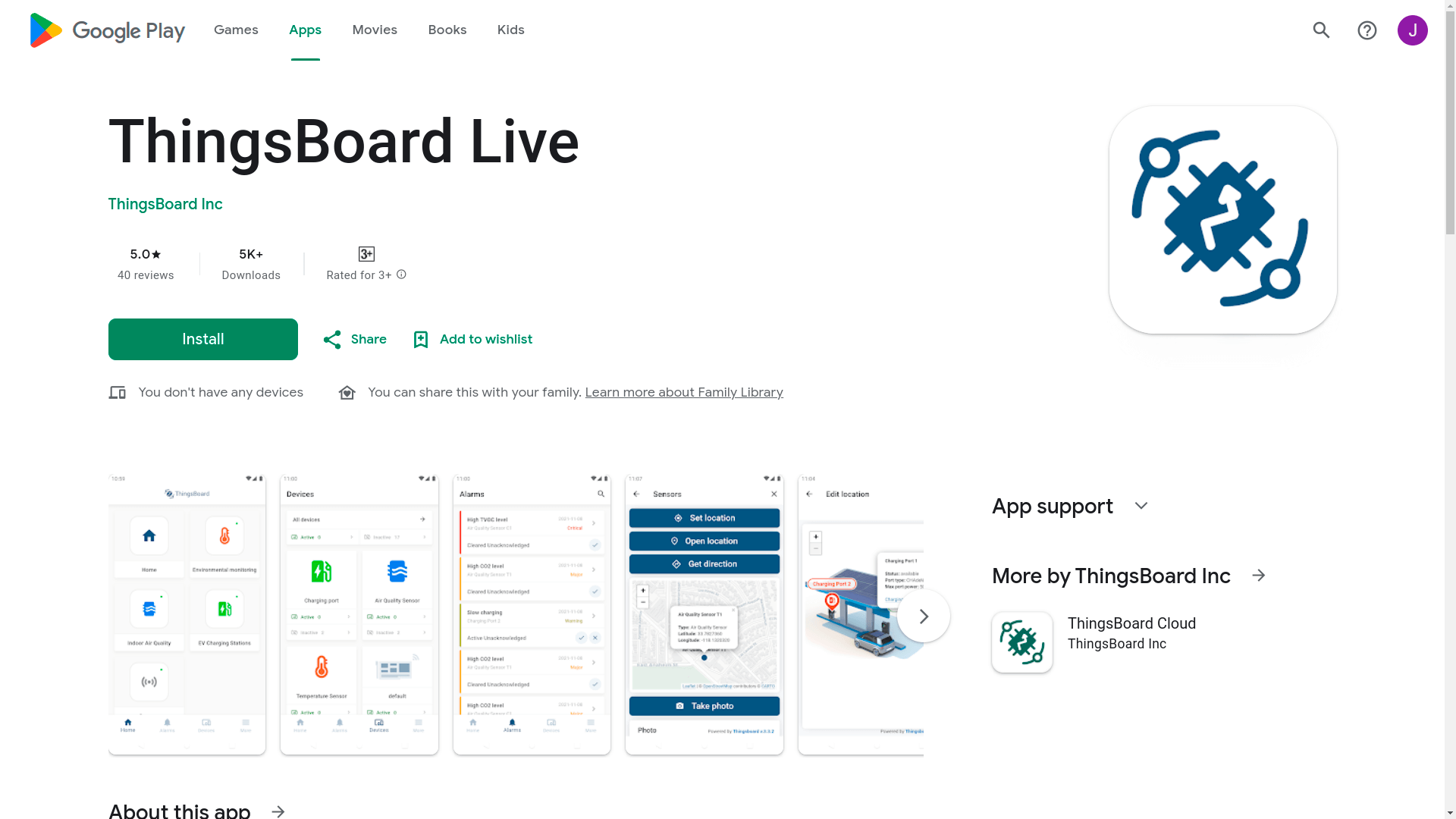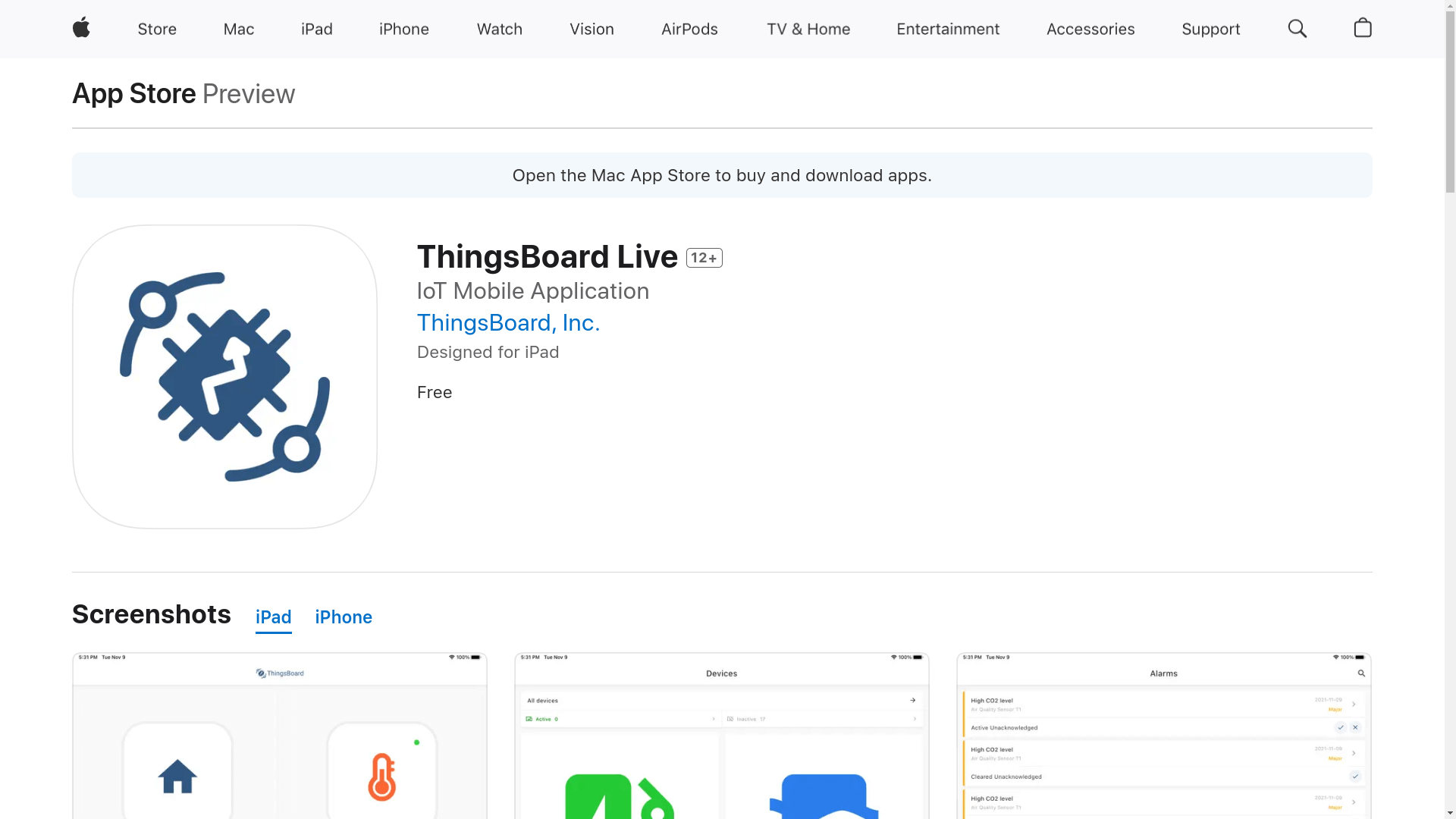If the ThingsBoard mobile application has not been installed yet, scanning the QR code will redirect the user to the application marketplace (available on Google Play and App Store).